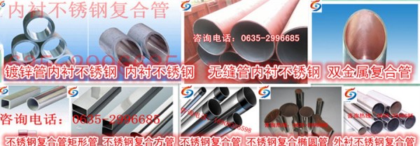 山東飛龍不銹鋼復(fù)合管有限公司是制造、銷售不銹鋼管;不銹鋼內(nèi)、外復(fù)合管及復(fù)合管制品;鋼材、建材的加工。不銹鋼外覆復(fù)合管具有外表美觀、防腐蝕、強(qiáng)度高、價(jià)廉的特點(diǎn),可廣泛應(yīng)用于市政工程的護(hù)欄,公路交通設(shè)施和路橋欄桿,網(wǎng)架鋼構(gòu),場(chǎng)館設(shè)施工程,高檔樓梯制造,路燈桿、旗桿,廣告牌架,車船的扶手、行李架;民用的窗簾桿、晾衣桿及家俱,醫(yī)療健身器械,自行車、摩托車把、保險(xiǎn)杠,包裝、紡織機(jī)械配件等領(lǐng)域。規(guī)格有管徑Ф12.7-Ф219mm。內(nèi)襯不銹鋼復(fù)合管是在鋼管內(nèi)復(fù)合不銹鋼層,它具有機(jī)械強(qiáng)度高、抗沖擊性強(qiáng)、耐高溫、耐腐蝕、衛(wèi)生等級(jí)高、不結(jié)垢、流體阻力小、連接方式與鋼管相同,此復(fù)合管應(yīng)用范圍廣,可以作為高溫?zé)崴?、熱蒸汽、高壓力管道。是一種安全性能高、使用壽命長、連接方式簡(jiǎn)單、綜合性能很佳的復(fù)合管材;又經(jīng)營各種鐵藝圍欄,石材欄桿,建材等項(xiàng)目; 我公司實(shí)力雄厚,信譽(yù)度高,以誠信為本,愿與各界朋友合作,竭誠為您服務(wù),歡迎客戶光臨指導(dǎo)!