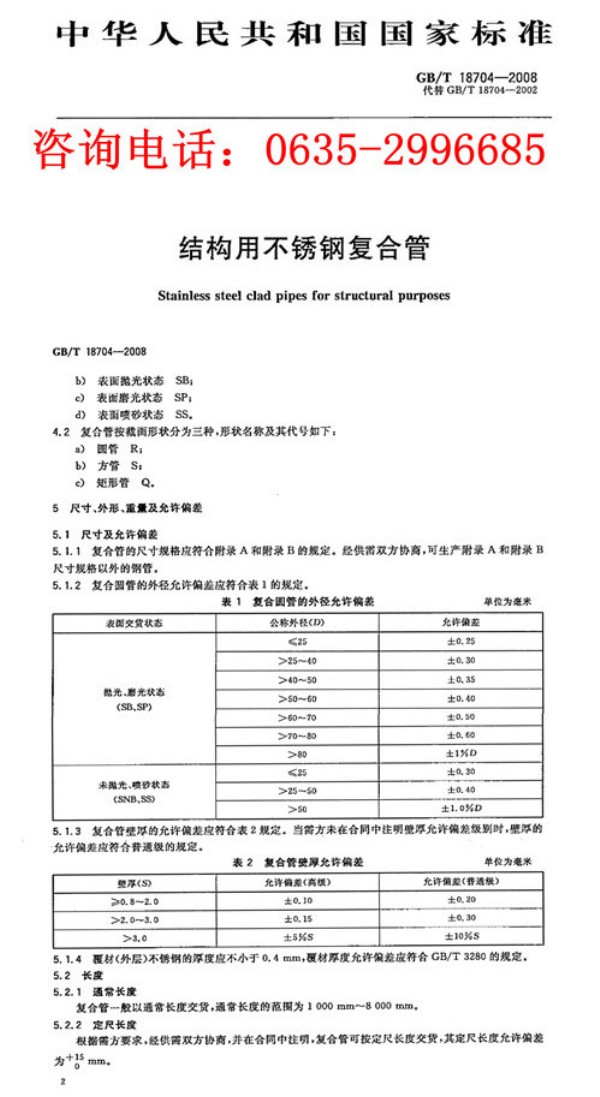 不銹鋼復合管壁厚、外徑允許偏差、執(zhí)行標準