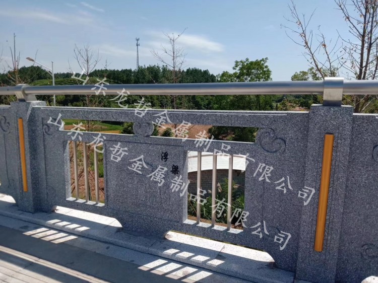鑄造石欄桿可以和其他形式的護欄組合成不同形式的組合護欄,被廣泛用于橋梁、河道、市政、園林景觀護欄中,設(shè)計美觀,還可根據(jù)實地要求添加各類象征元素。立柱采用鑄造石欄桿,有著造型美觀、時尚、環(huán)保、不易變形、造價低廉的性能優(yōu)點;橫管和豎管采用不銹鋼復(fù)合管,表面經(jīng)過靜電烤漆處理,抗沖壓性強,絕緣阻燃,經(jīng)久耐用。融入浮雕板的設(shè)計,既體現(xiàn)了護欄防護功能,又反映了我國的民族文化源遠流長,造型獨特。
